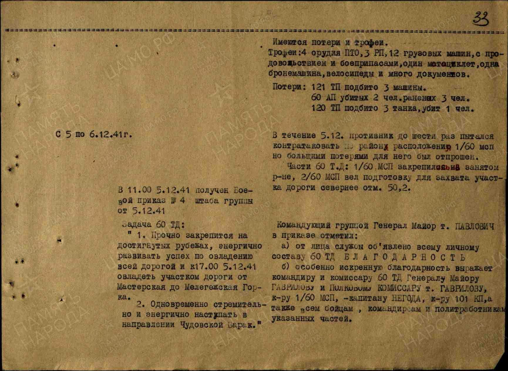 Теперь текст ЖБД 60 ТД за 04 декабря 1941 года: