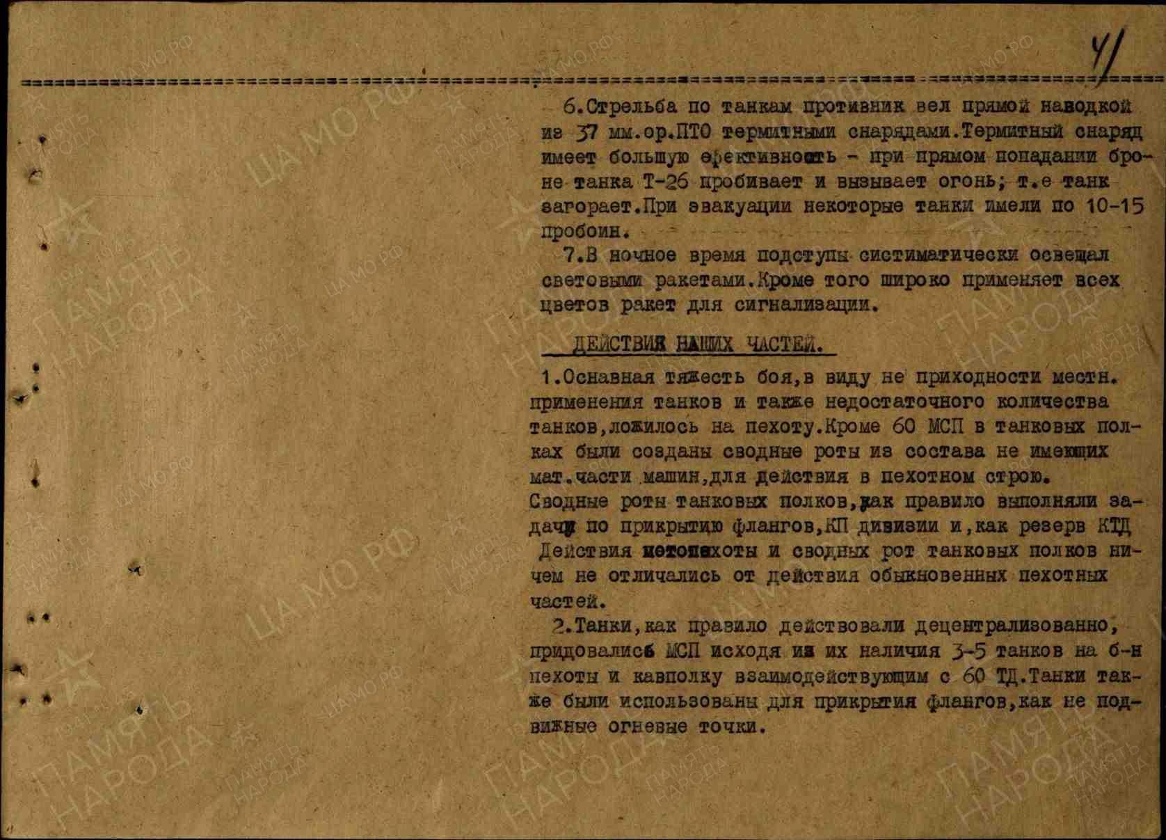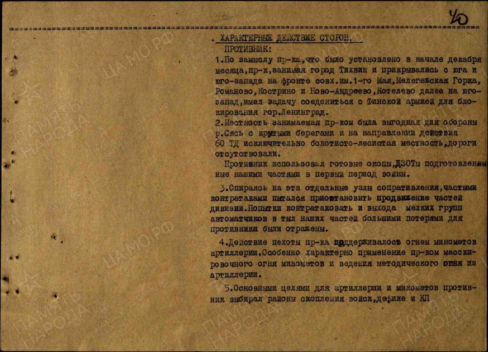 Теперь текст ЖБД 60 ТД с продолжением выводов из боевых действий под Тихвином за этот период 1941 года: