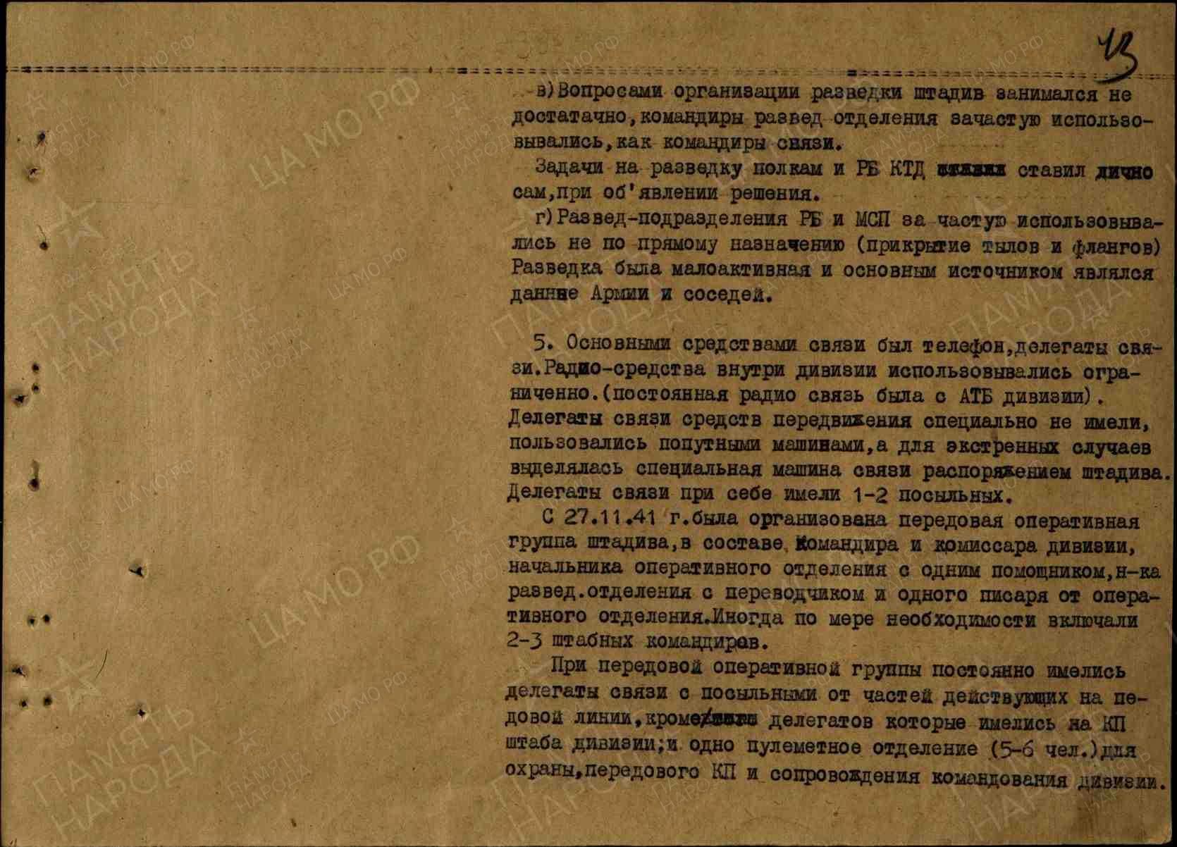 в). Вопросами организации разведки штадив занимался недостаточно, командиры разведотделения зачастую использовались как командиры связи.