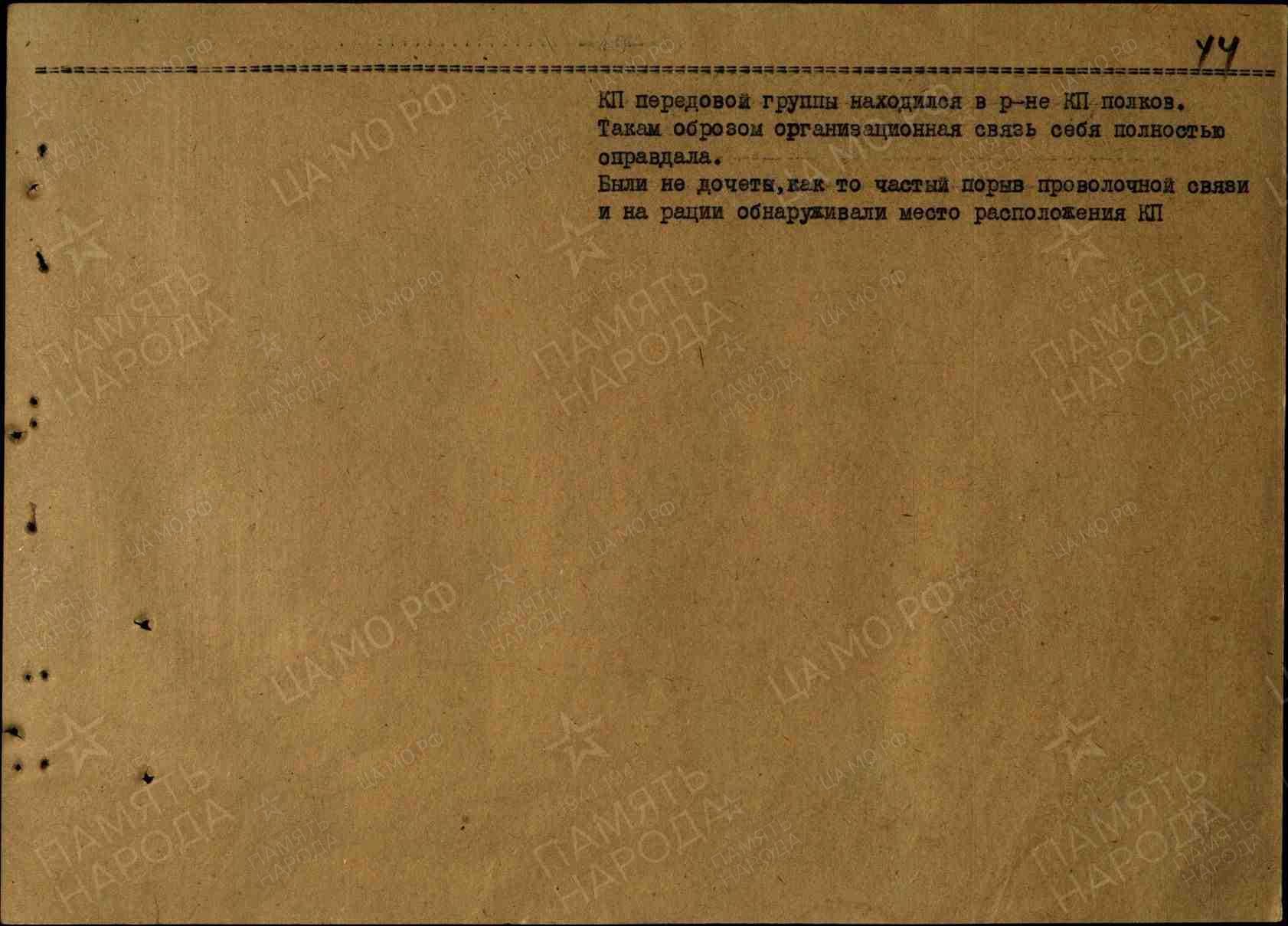 4. 120 ТП с 4 танками, 5 бронемашинами 60 МСП, двумя 122 мм орудиями, пятью орудиями ПТО - мой резерв. Оставаясь в районе КП дивизии, иметь ввиду развитие успеха 60 МСП и отражения контратак противника со стороны Мелегежская Горка, Ново-Андреево.