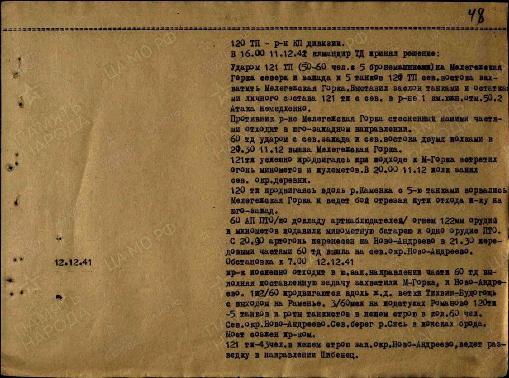 Теперь текст ЖБД 60 ТД за 11 декабря 1941 года: