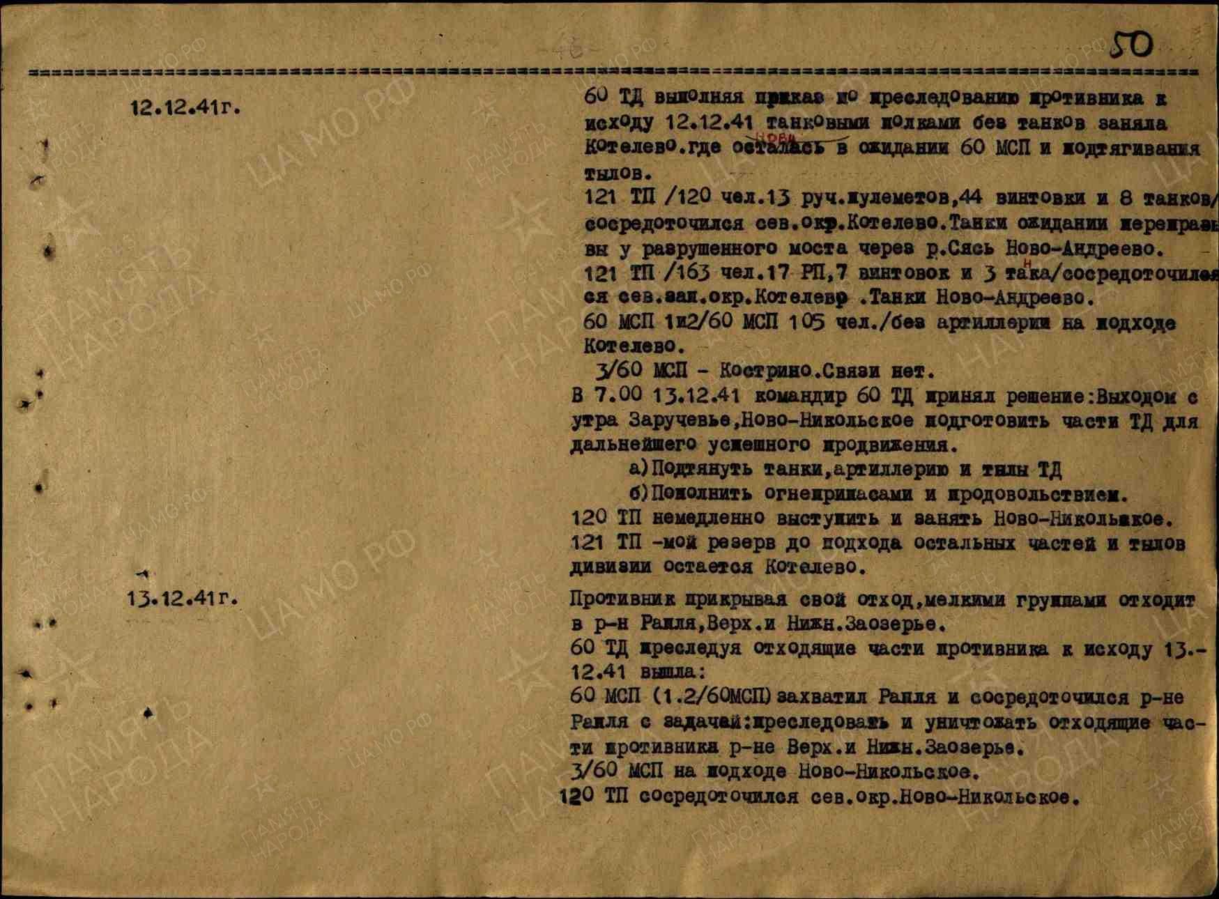 Теперь текст ЖБД 60 ТД за 13 декабря 1941 года:
