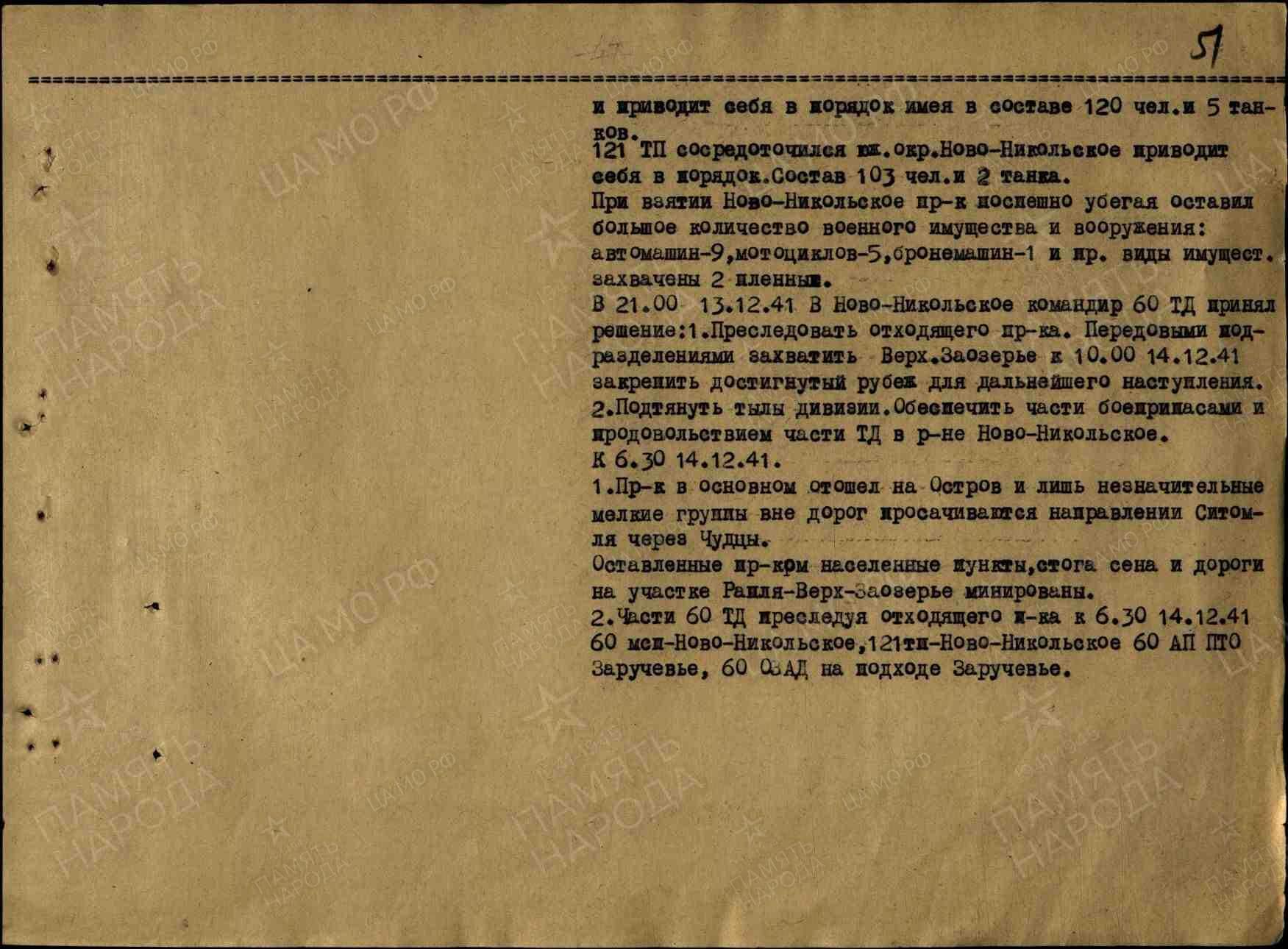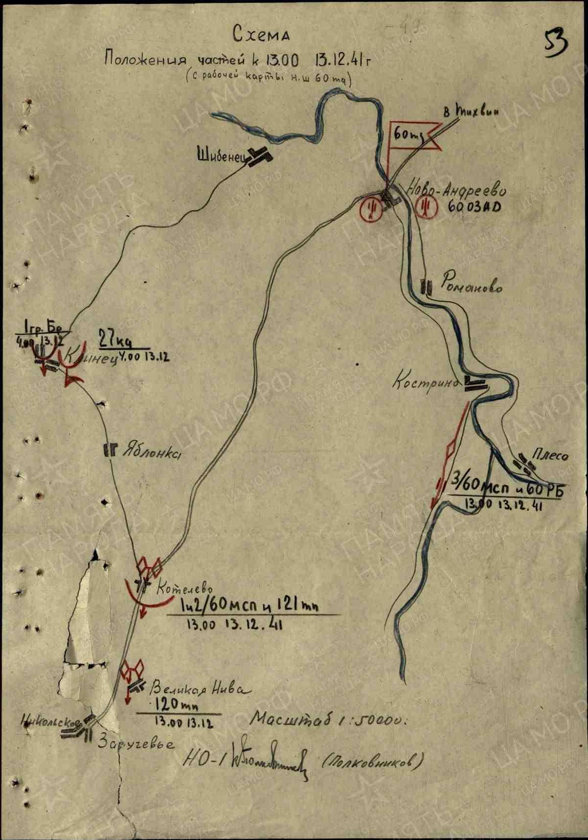 2. Части 60 ТД, преследуя отходящего противника, к 06:30 14 декабря 1941 года находились: