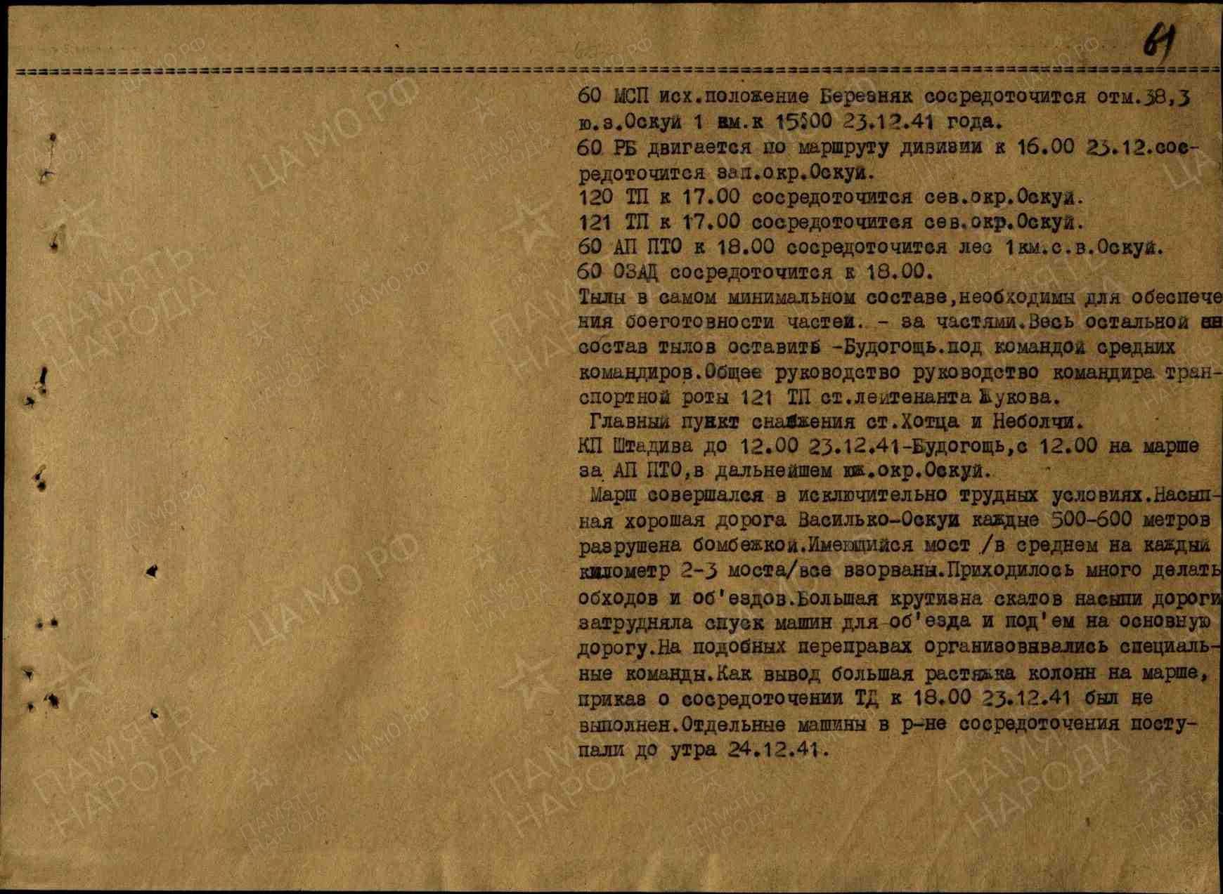 2. 60 ТД к 18:00 23 декабря 1941 года сосредоточиться в Оскуй.