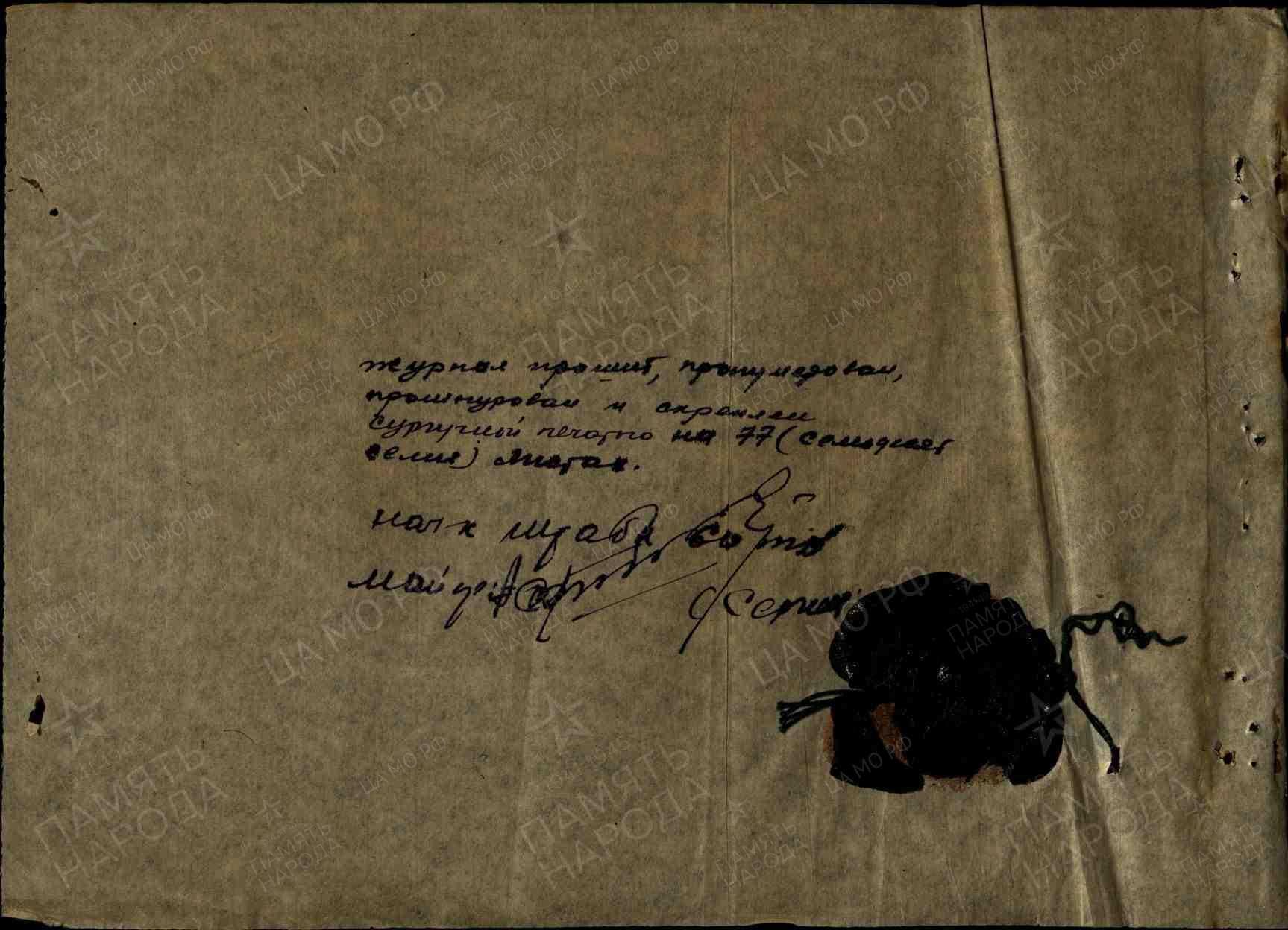"Журнал боевых действий" (ЖБД) 60 танковой дивизии (60 ТД), скрепление документа печатями