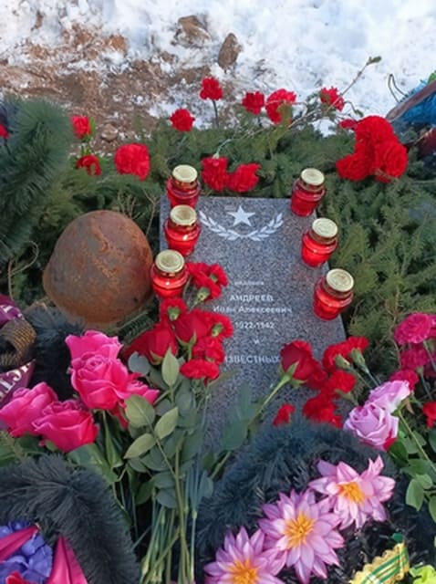Поисковому отряду "Русь" при помощи криминалистов удалось установить имя лишь одного погибшего бойца. Это наш земляк - Андреев Иван Алексеевич.