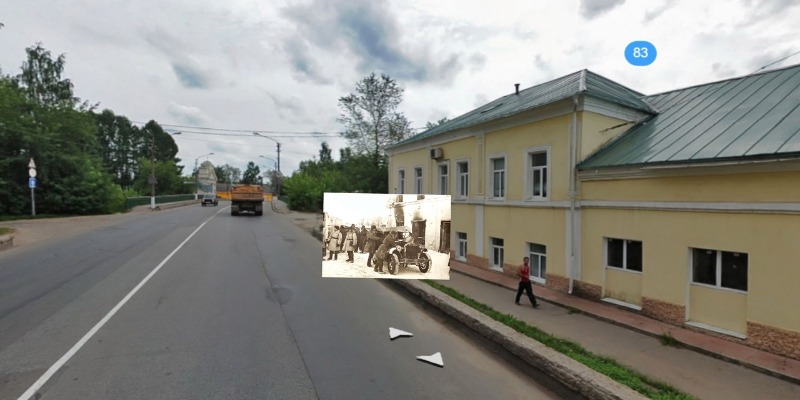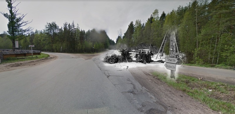 См. файл: «Тихвин_1942_Наложение_Фото_2020_14» = практически это же место, только с противоположной стороны, проезжей части дороги