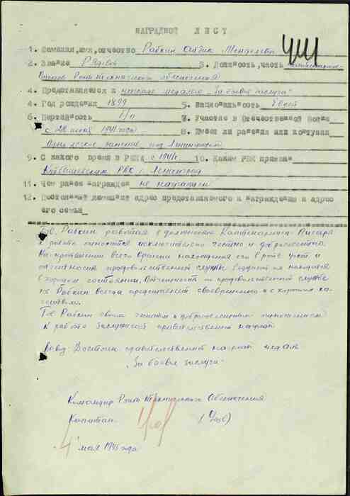 Товарищ Рабкин своим честным и добросовестным отношением к работе заслуживает правительственной награды.