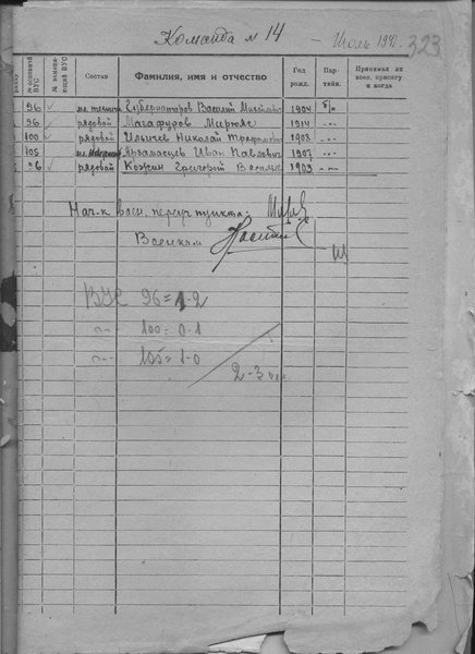Из: извещения боевых частей ВК Ленинградской обл., Отдел по г. Бокситогорск, Тихвин, Бокситогорскому и Тихвинскому р-нам