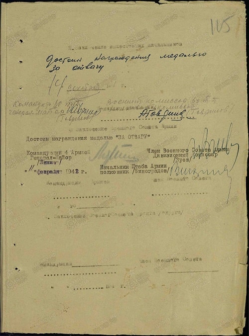 Приказа войскам 4 Армии Nº 06/н от 30/03/1942