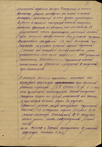 «… 17.10.1941 года при ночных полетах на аэродроме Шугозеро, при вывозке летного состава 57 СБПК ВФ в 03 часа ночи произошла катастрофа.