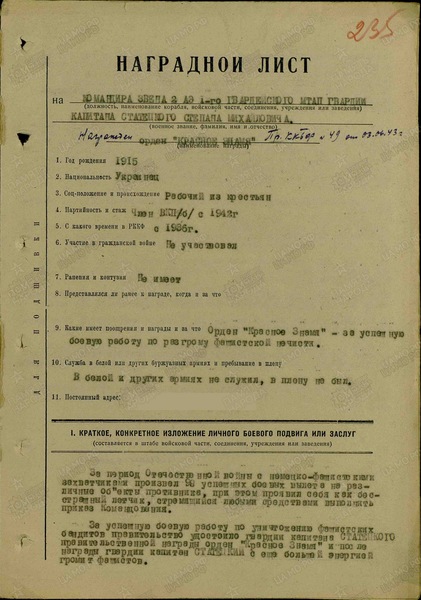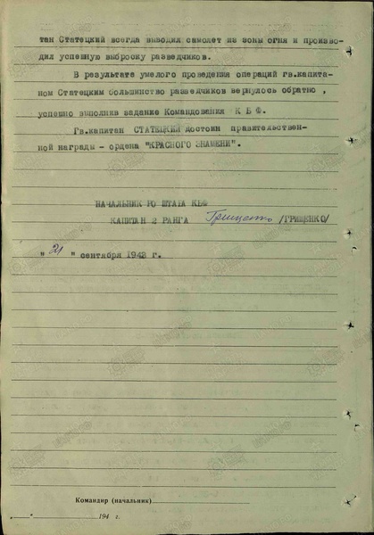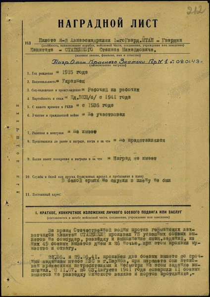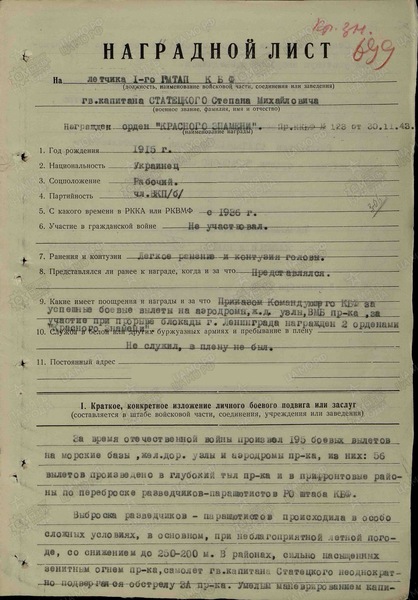 Подвиг ID: 51147429; Орден Красного Знамени от 30.11.1943