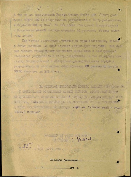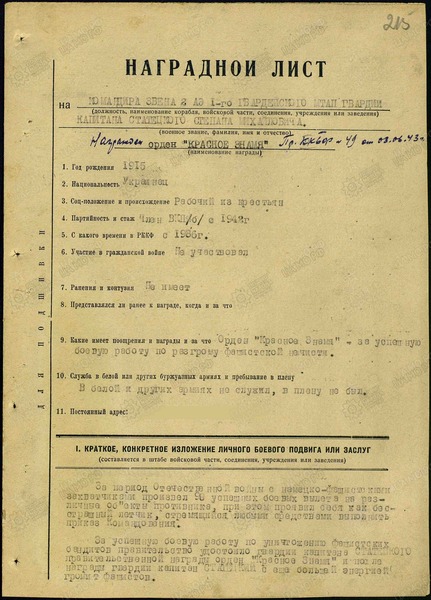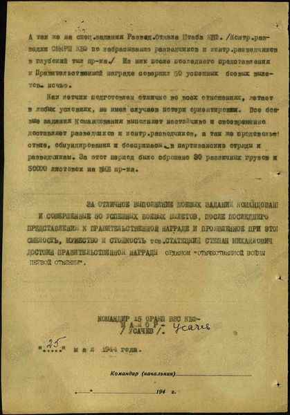 Подвиг ID: 7865008; Орден Отечественной войны I степени от 25.05.1944