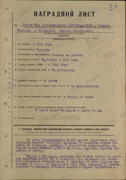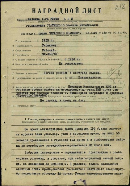 ОБД ID: 77379285; (Зелюкин + Статецкий) из донесения о безвозвратных потерях от 03.09.1941; источник: упр. ввс КБФ; стр. 5/5