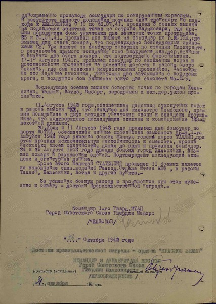 Подвиг ID: 7865004; Орден Красного Знамени от 28.10.1942
