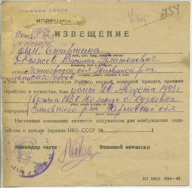 Файл: «Тихвин_Архив_РВК_Похоронки_Рыжев.В.П_2»