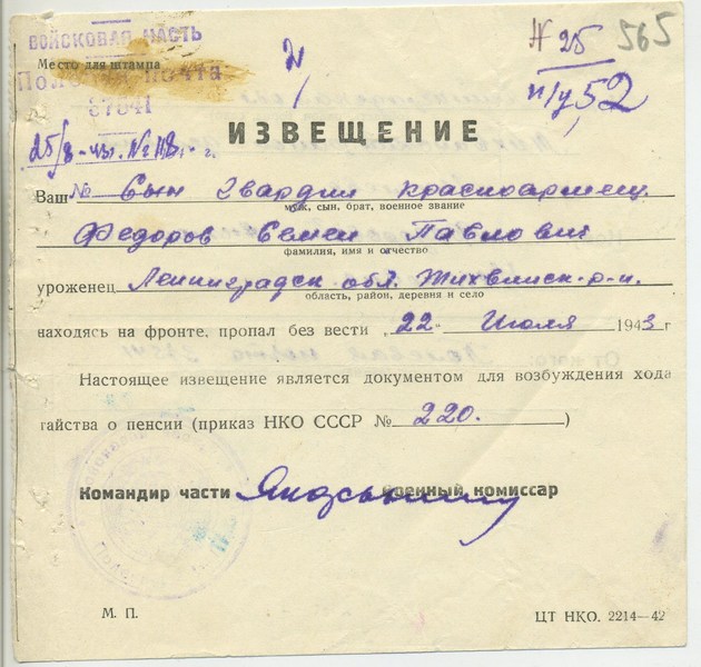 Файл: «Тихвин_Архив_РВК_Похоронки_Федоров.С.П_2»