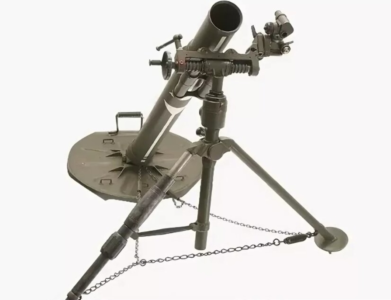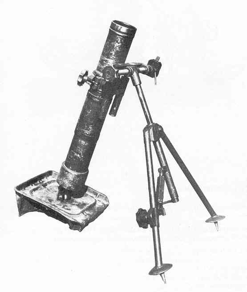 См. файл по дате 30.07.1943: «…подавлена мин. батарея 81 мм…» = миномет калибра 81,4 мм разработан на основе английской конструкции Стокса-Брандта = 8 cm schweres Granatenwerfer (8 cm sGrW-34)