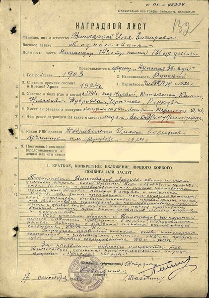 За проявленные доблесть и мужество, тов. Виноградов достоин правительственной награды - ордена «Красная Звезда…»