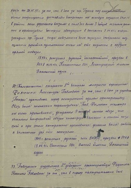 Место призыва: 15.07.1941 Капшинский РВК, Ленинградская обл., Капшинский р-н