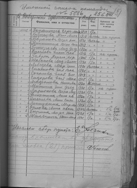 1. Убыл 25.06.1941 в Выборгский ГВК Ленинградская обл., г. Выборг номер команды 5886