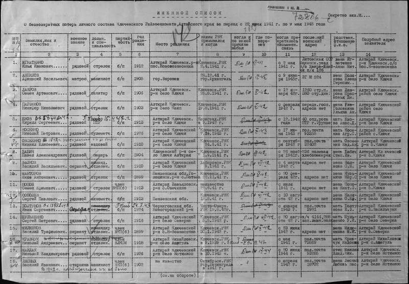 Место призыва: Ключевский РВК, Алтайский край, Ключевский р-н
