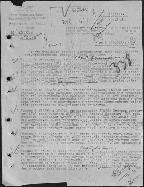 ОБД ID: 80732573; Донесения о безвозвратных потерях от 30.08.1944; источник: ут 7 А